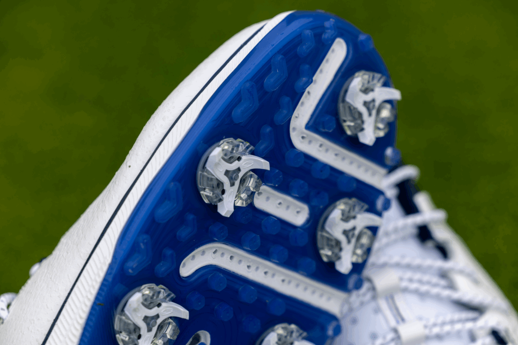 The ventilated TPU outsole combined with Tour Flex Pro replacement spikes creates a grip pattern that inspires confidence, whether you’re pushing off in your backswing or driving through impact on soft ground.
